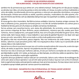 O Sindicato dos Vidreiros realiza neste domingo, 27 de setembro de 2015, a assembleia geral para iniciar a campanha salarial 2015/2016.